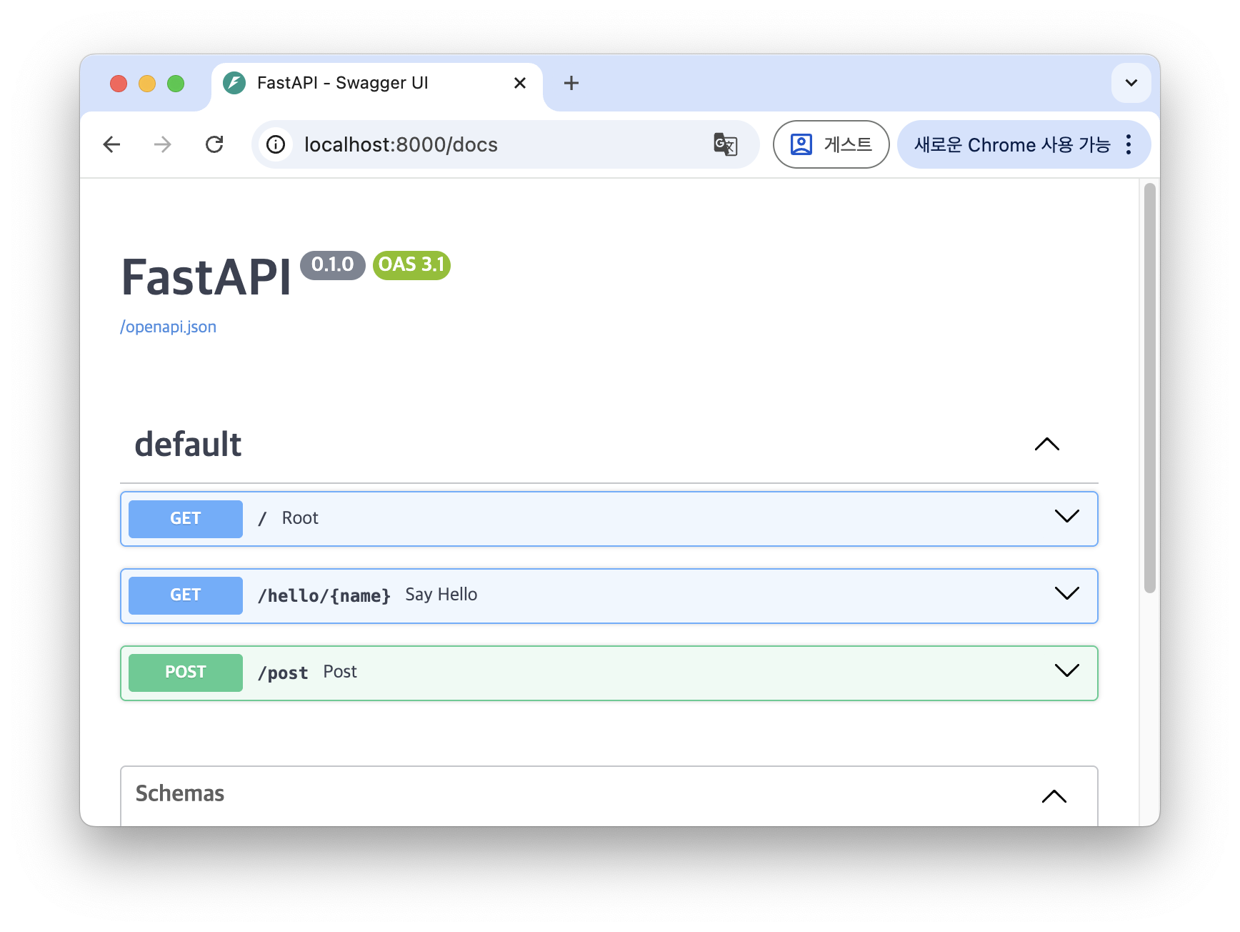 - http://localhost:8000/docs 접속 (Swagger UI)