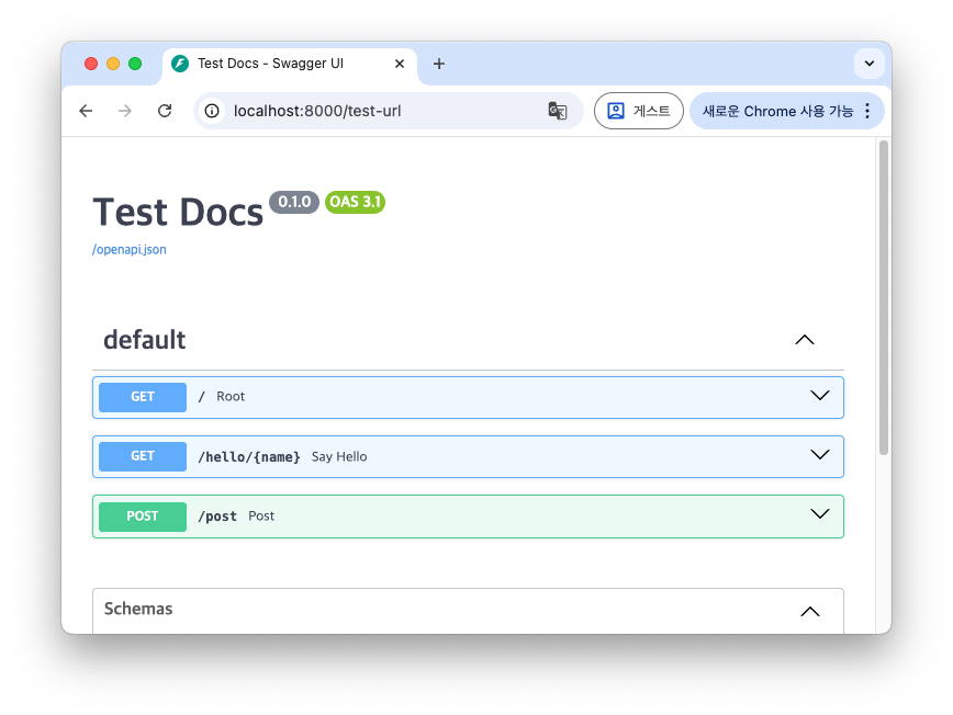 - Swagger UI title 변경 (AS-IS FastAPI, TO-BE Test Docs)