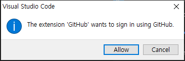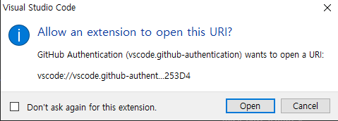 - Allow 클릭하면 웹 페이지로 이동할텐데 이미 로그인이 되어있기 때문에 VSCode로 열 것인지 물어보는 창이 나온다.