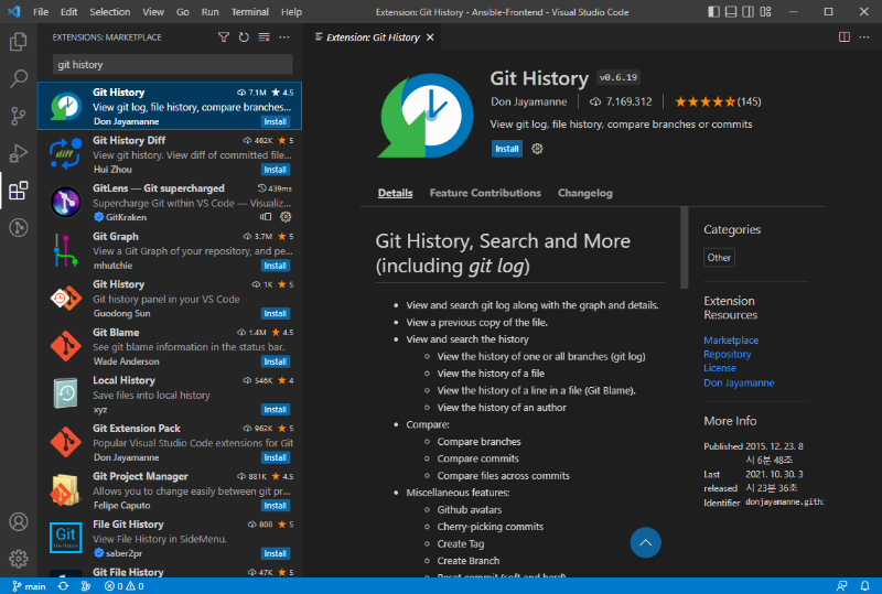 - Git 사용에 편리한 Extention : GitLens, Git History