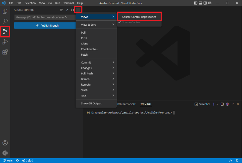 - Source Control 탭에 가서 더보기 > Views > Sorce Control Repositories 클릭해준다.