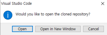 - VSCode로 돌아와 Open 클릭한다.