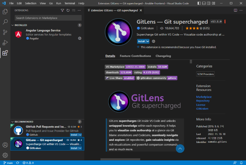 - Git 사용에 편리한 Extention : GitLens, Git History